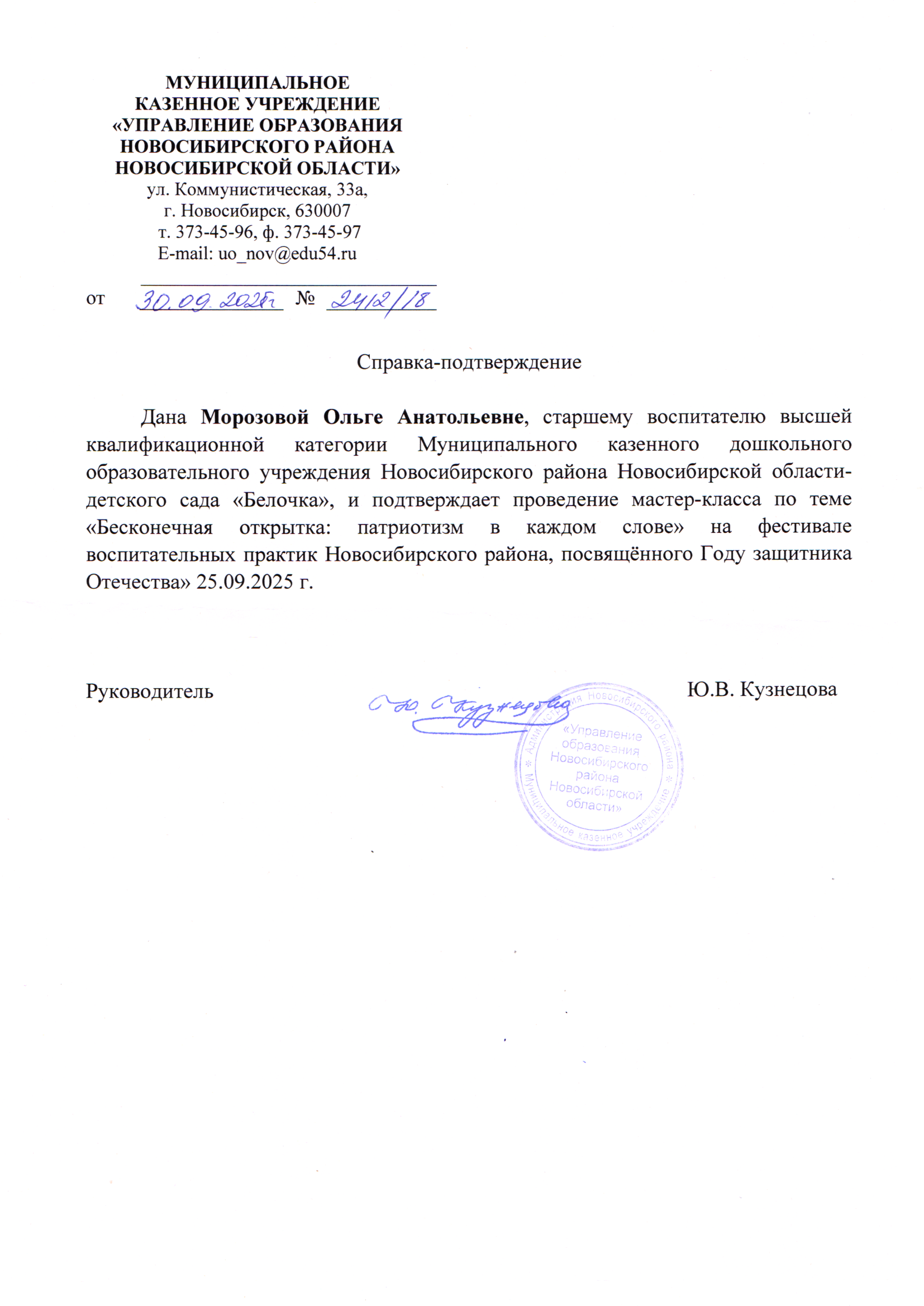Справка -подтверждение о выступлении на РМО музыкальных руководителей 1 февраля 2023 г.