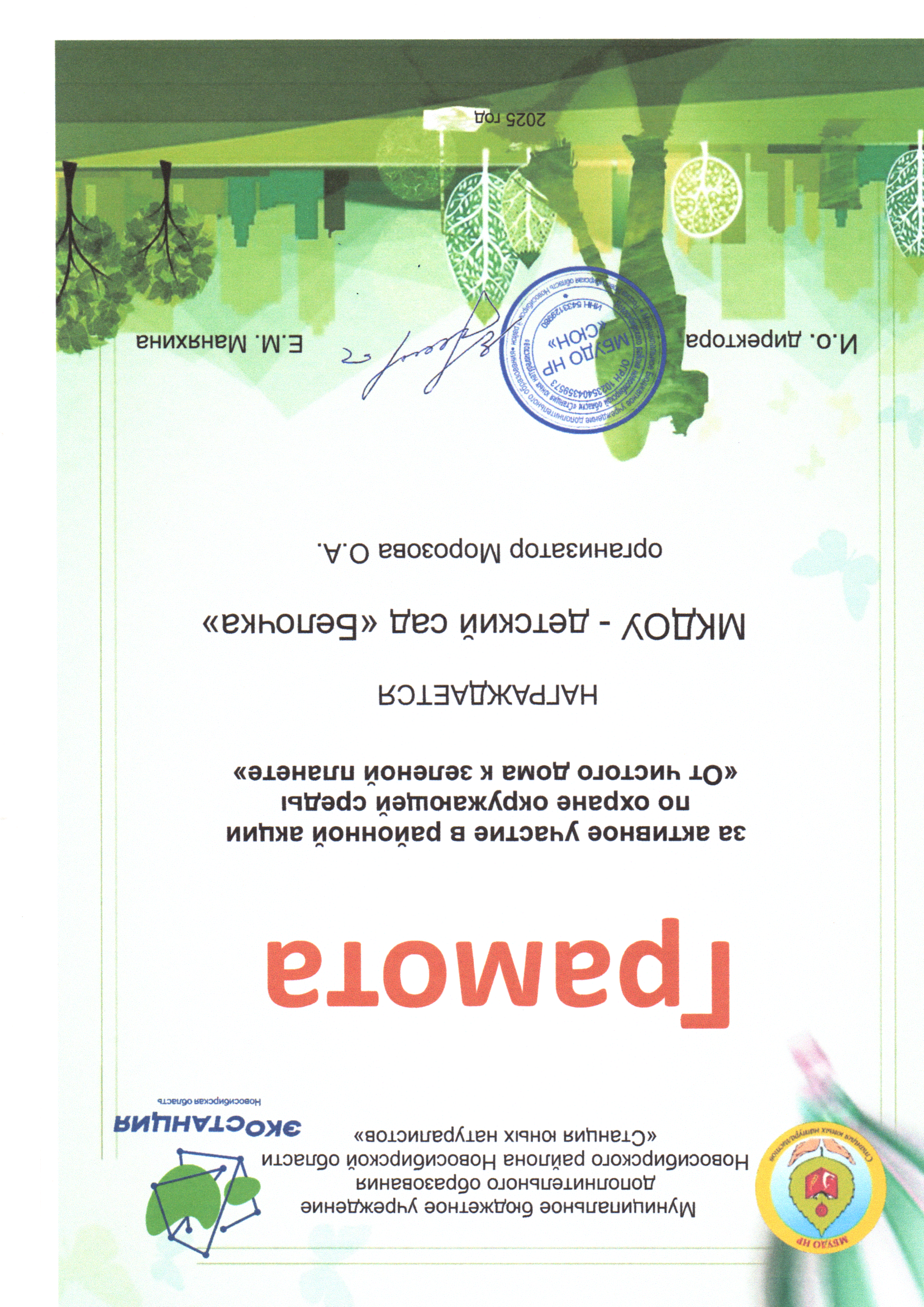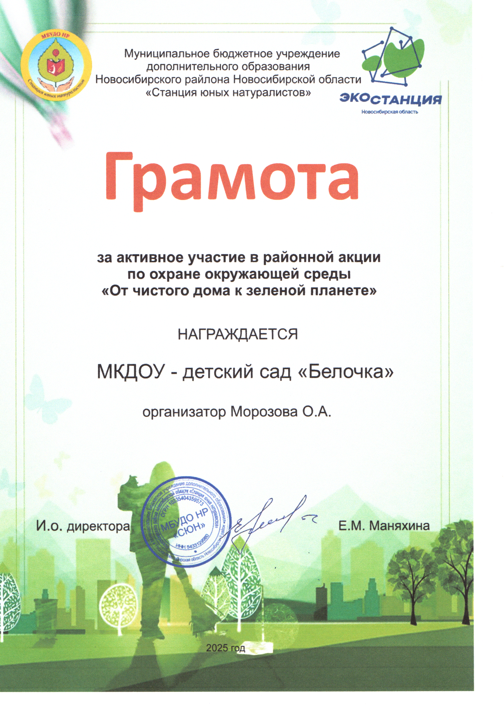 Грамота "От чистого дома к зеленой планете" 2025 г.