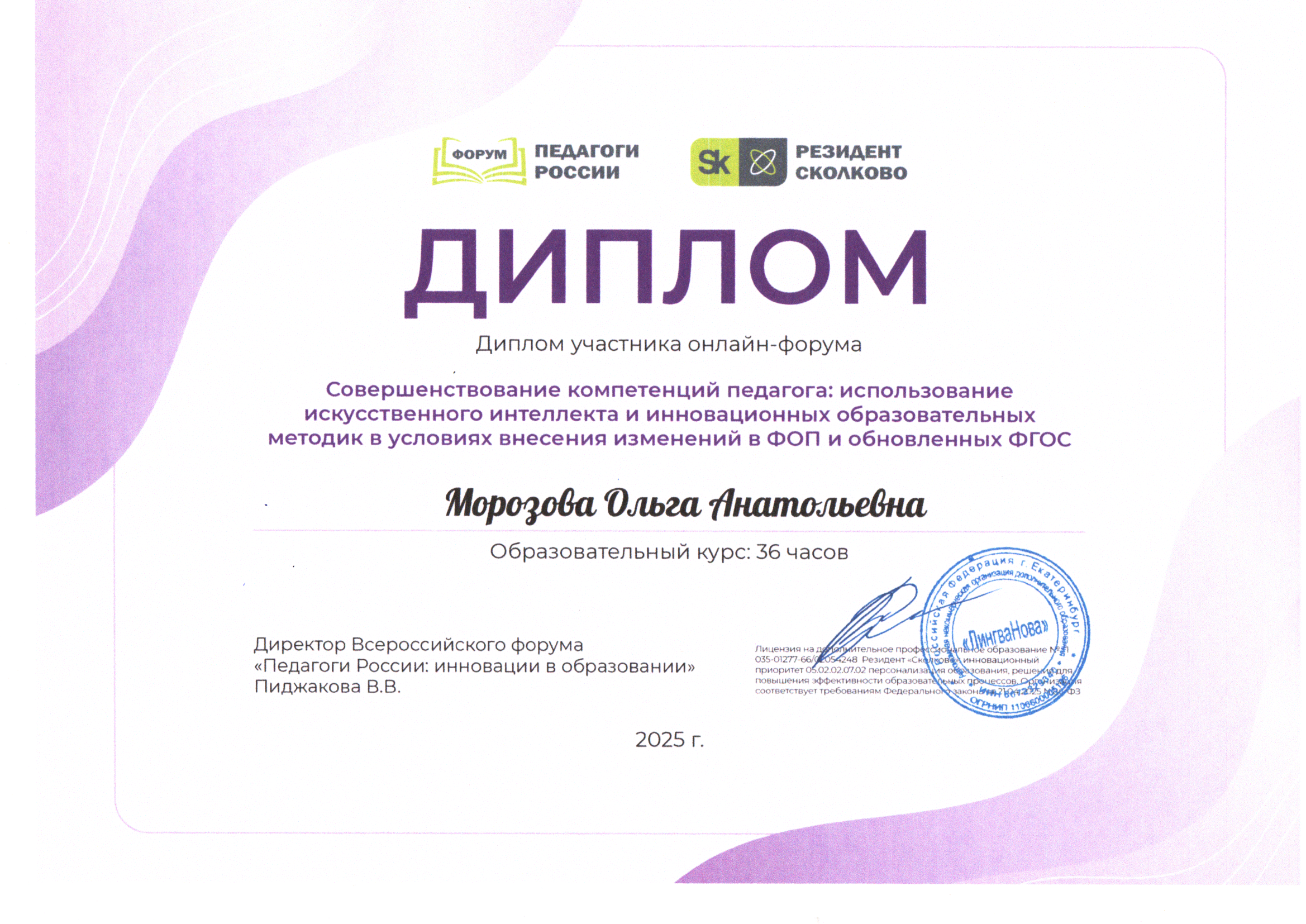 Диплом участника онлайн-форума Педагоги России 2025 г.